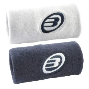 Muñequeras Nox azul marino con logo blanco, perfectas para pádel. Ofrecen comodidad y tecnología «Balance Fresh». ¡Consigue tu blister!
